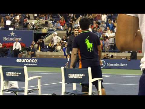 Uno de los grandes gustos que me dí en el US Open fue ayer por la noche. Si bien tuvimos que esperar para ver el choque entre Juan Mónaco y Federer, valió la pena. Y no sólo porque lo del suizo fue una clase magistral, sino también porque la vi en la primera fila sentado detrás del umpire.